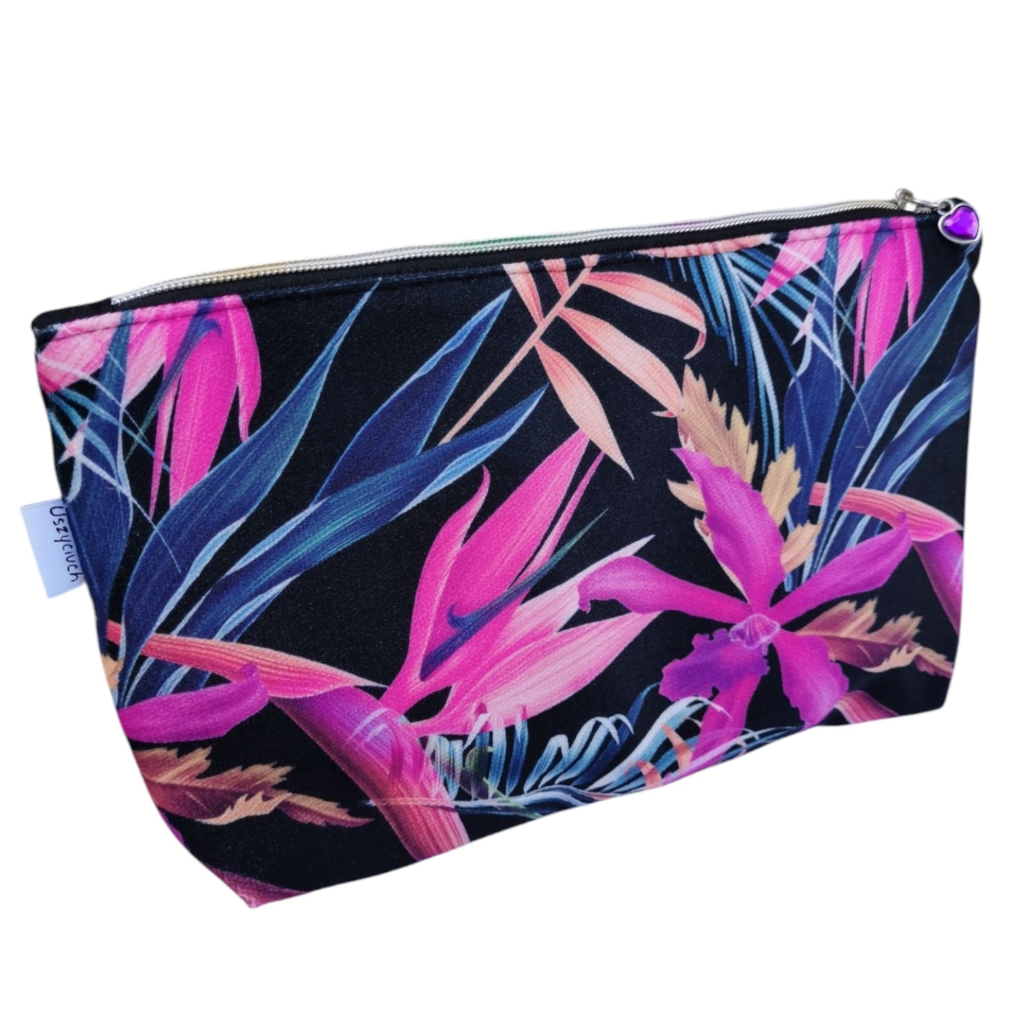 Kosmetyczka damska welurowa etui do torebki saszetka do torby kwiaty strelicja