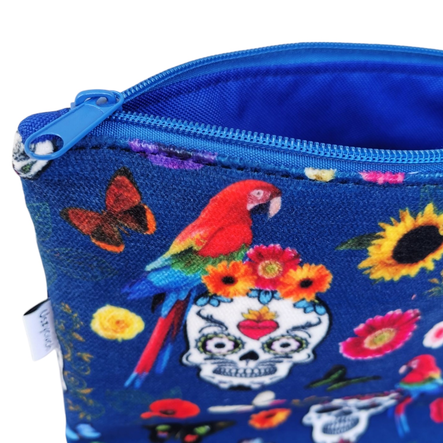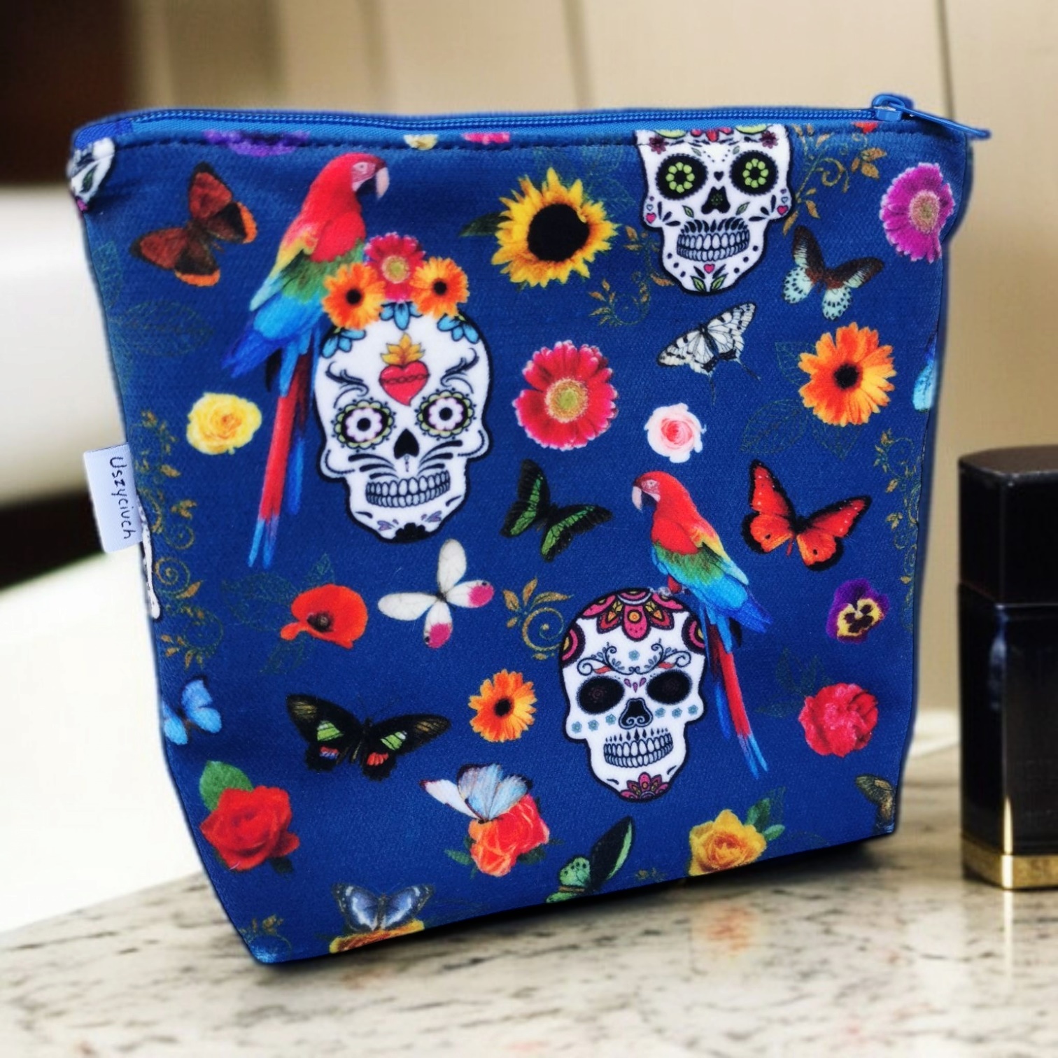 Kosmetyczka welurowa czaszki i papugi