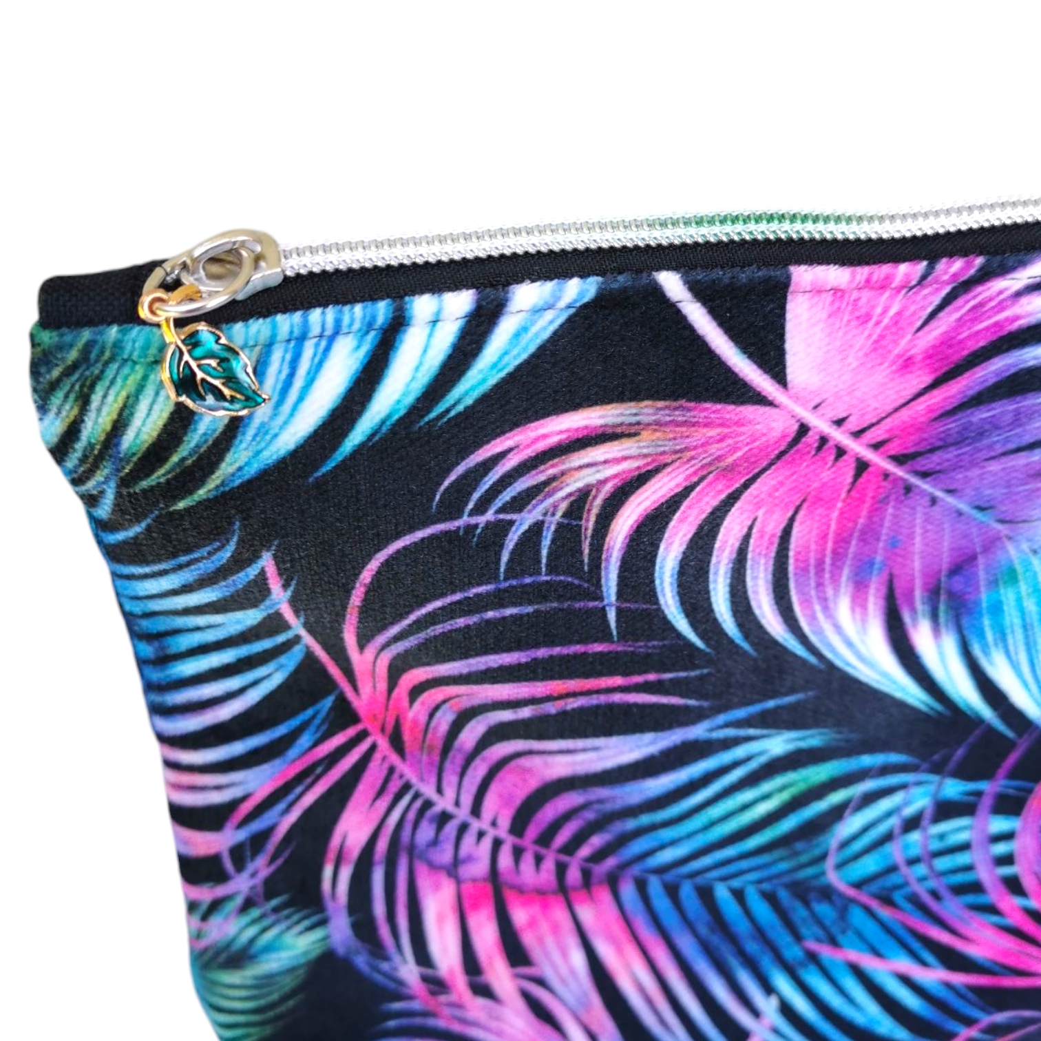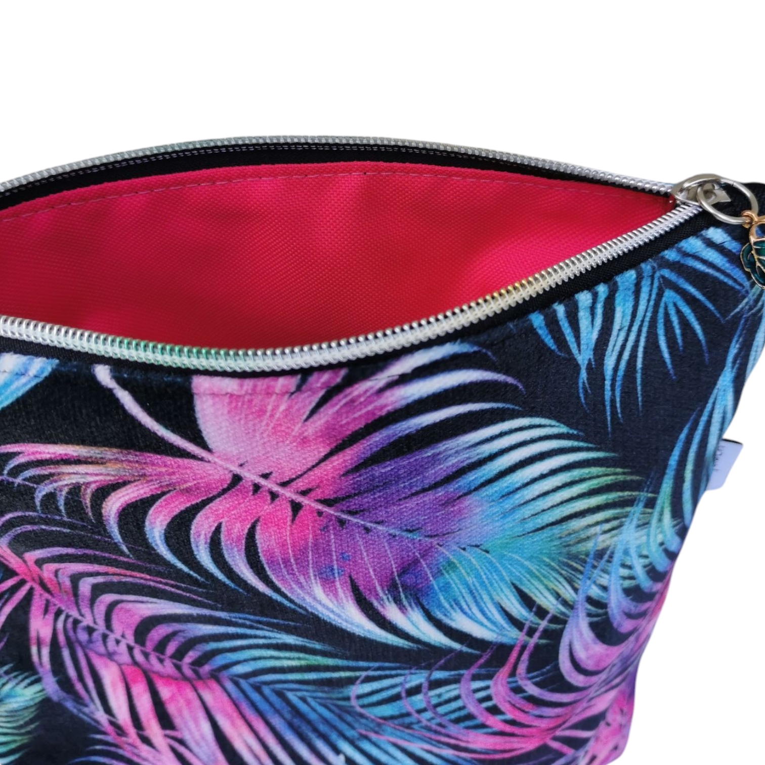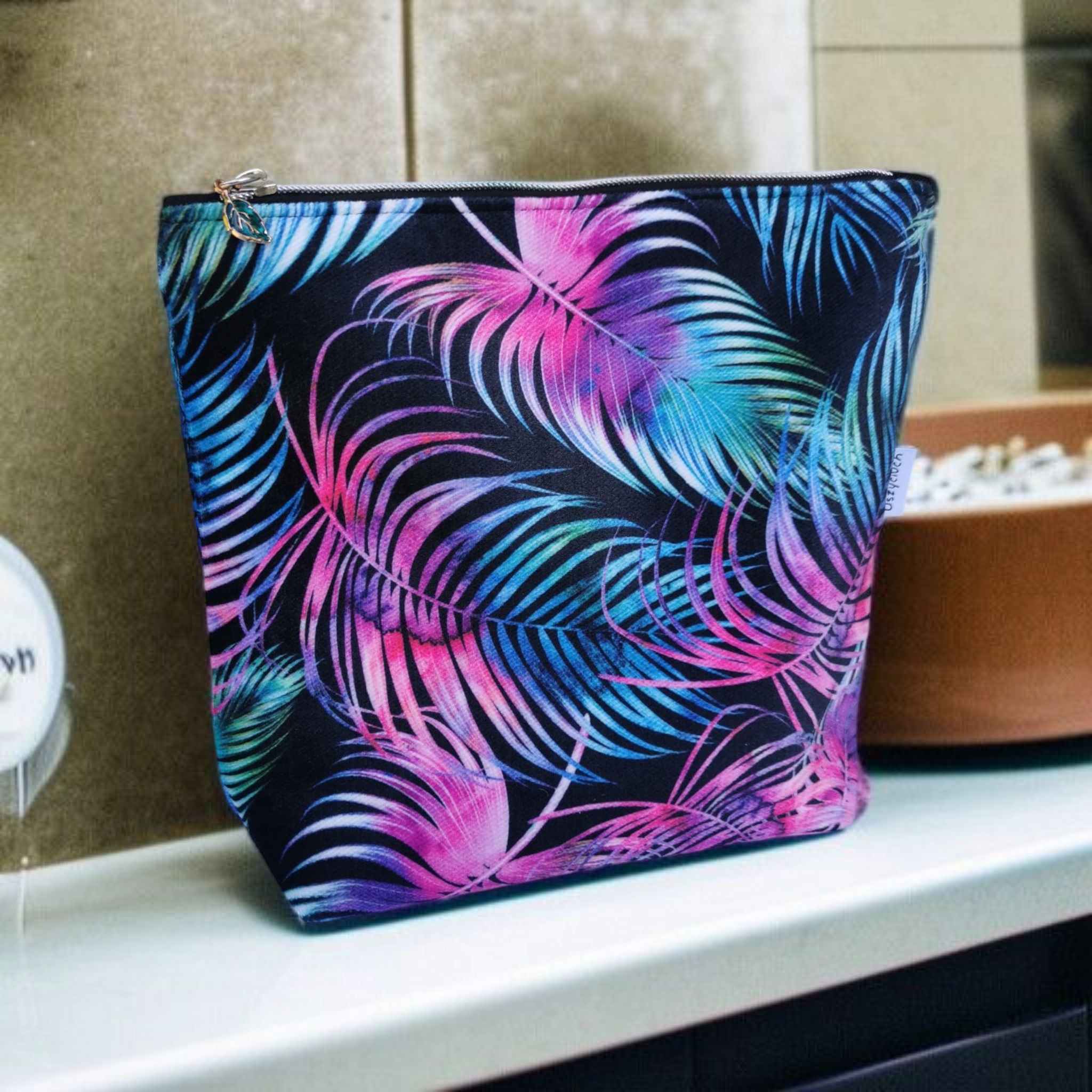 Kosmetyczka uszyta z wysokiej jakości weluru tapicerskiego z kolorowym wzorem.