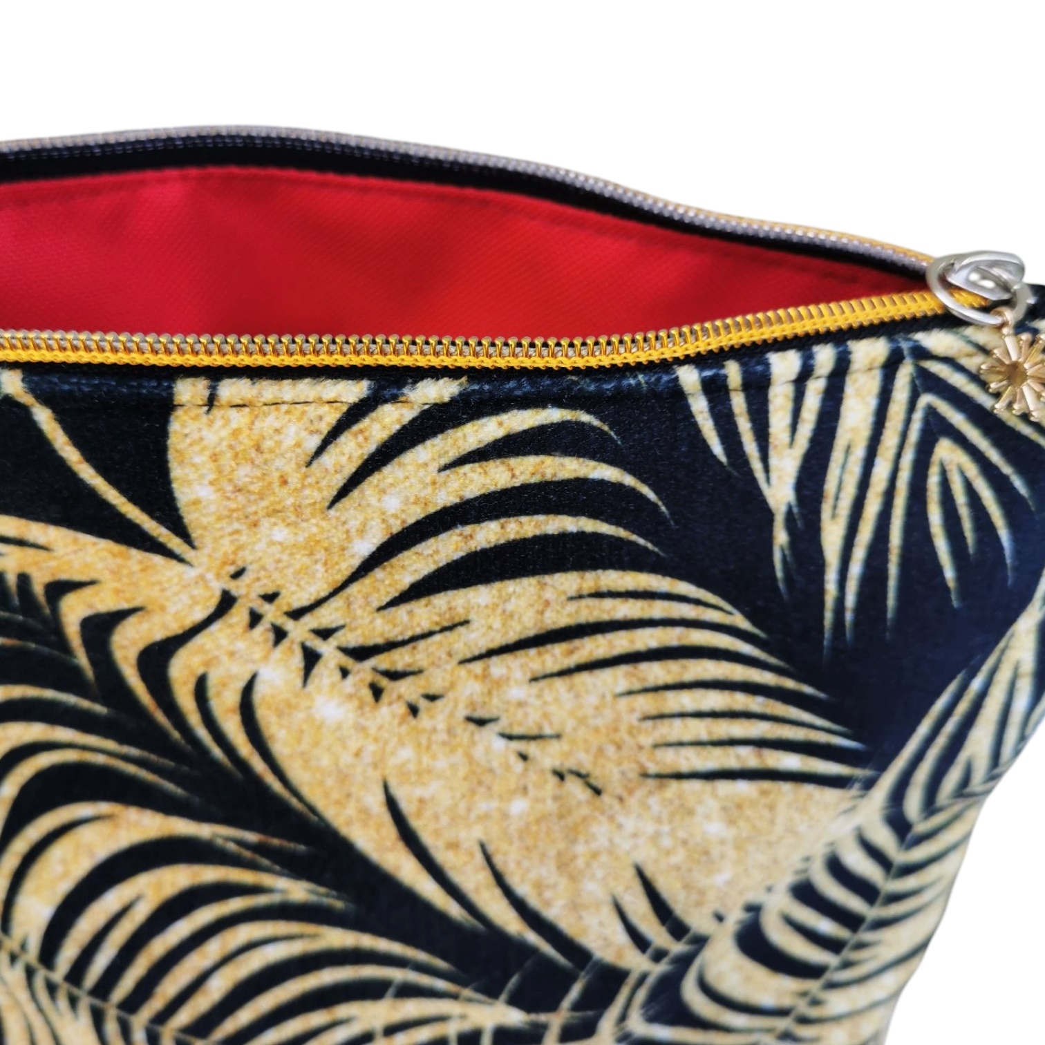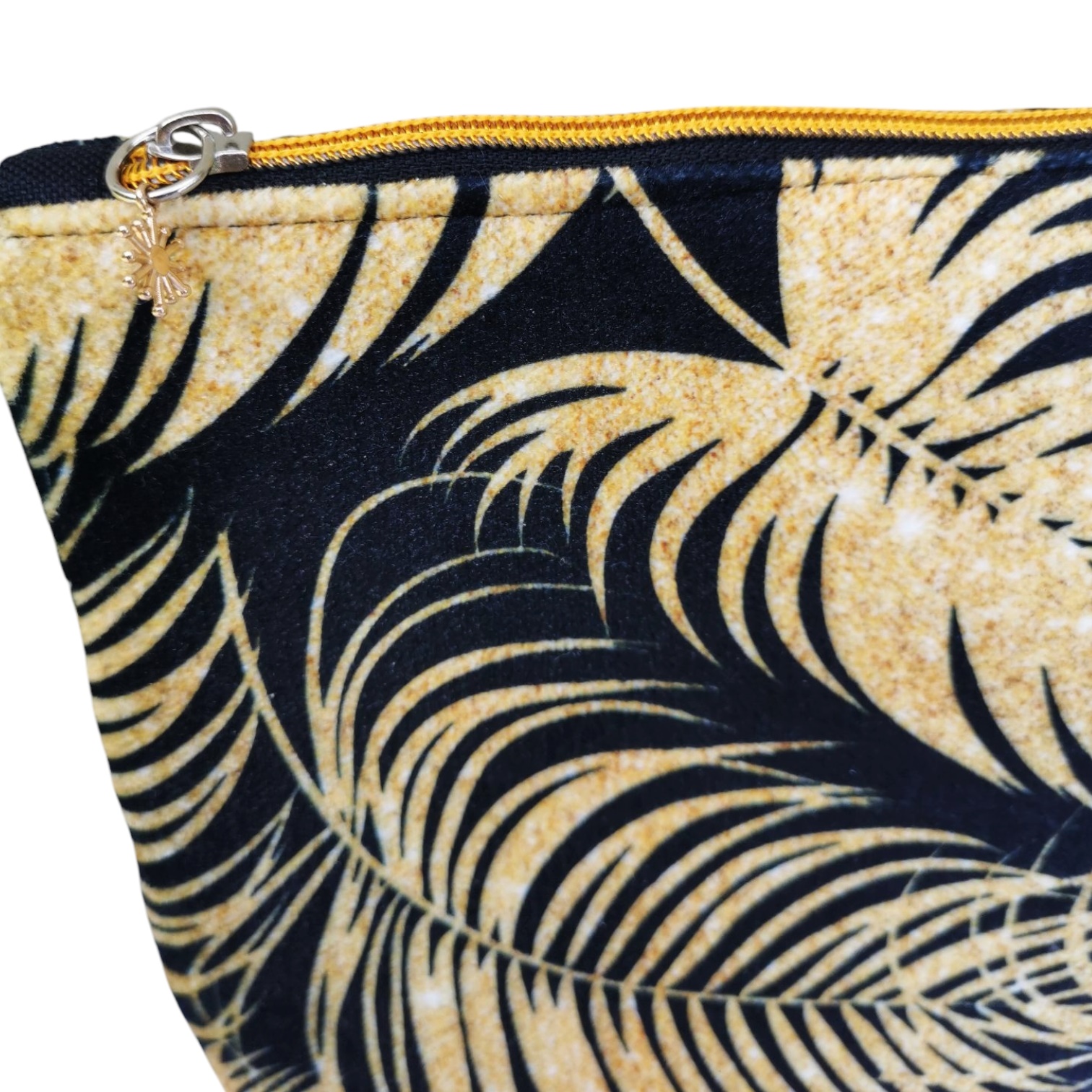 Kosmetyczka damska welurowa saszetka do torebki etui pióra złote