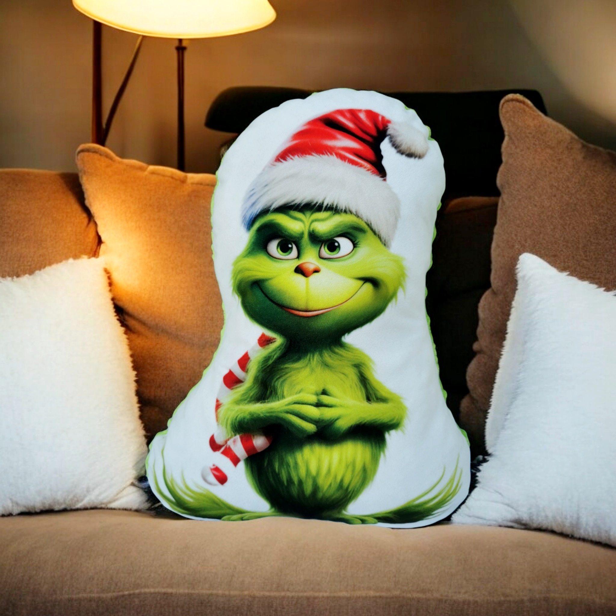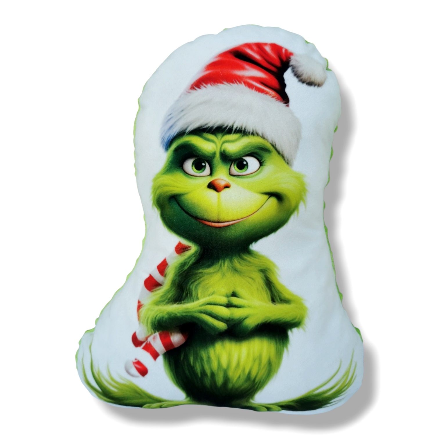 Stylowa ozdobna poduszka uszyta z mikrofazy z nastrojowym świątecznym wzorem i z mięciutkiego polaru minky w kolorze zielonym.