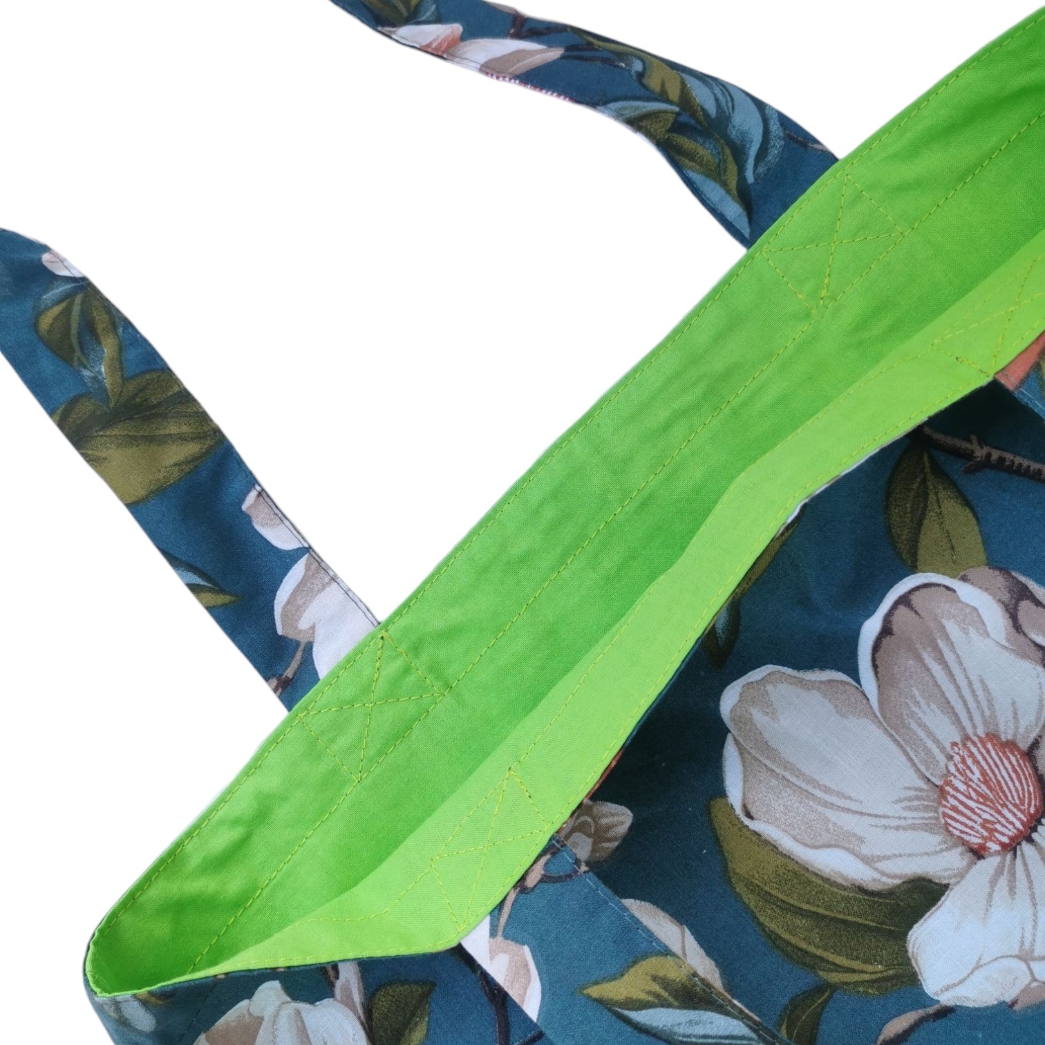 Ekologiczna torba na zakupy uszyta z bawełny 100% z nadrukiem i bawełnianą zieloną podszewką.