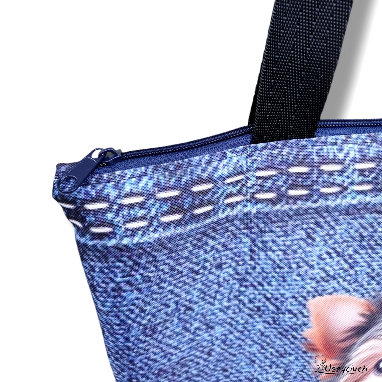 Torba shopper uszyta z wysokiej jakości materiału wodoodpornego z nadrukiem, tył w jednolitym kolorze. W środku wodoodporna podszewka i otwarta kieszonka. Dzięki zastosowaniu materiału wodoodpornego, torba jest łatwa w utrzymaniu czystości.